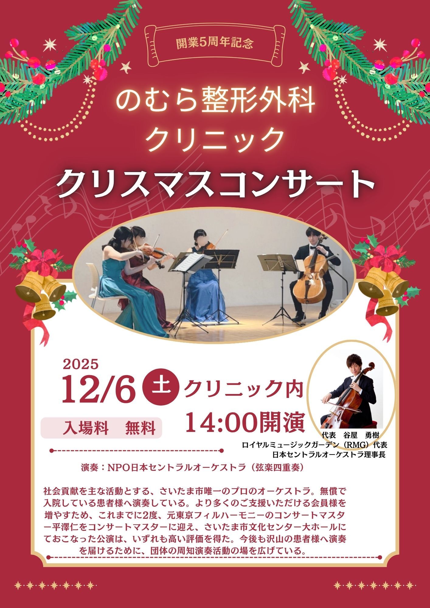 感謝の意を込め、5周年を記念し、12月6日(土)にクリスマスコンサートを開催いたします。